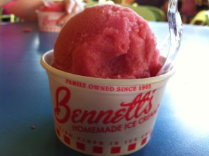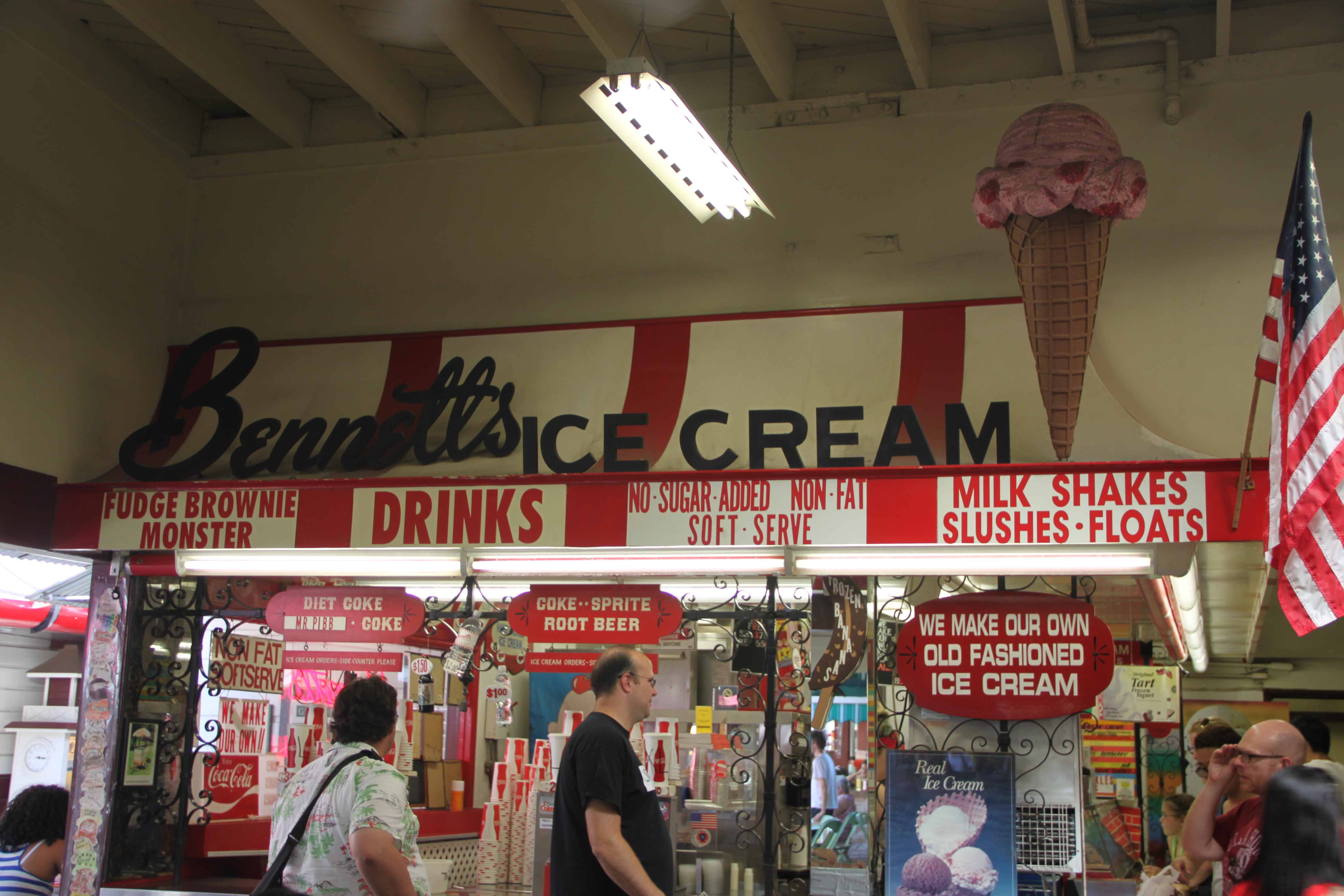 After a pleasant lunch, we grabbed a chocolate rugula from one of the many bakeries then strolled around, checking out all the little nooks and crannies of the market. We soon found ourselves ready for ice cream and so patroned the Bennett’s Ice Cream where we each had the Cabernet Sauvignon Sorbet. I was skeptical at first, but I have to admit this was really good.