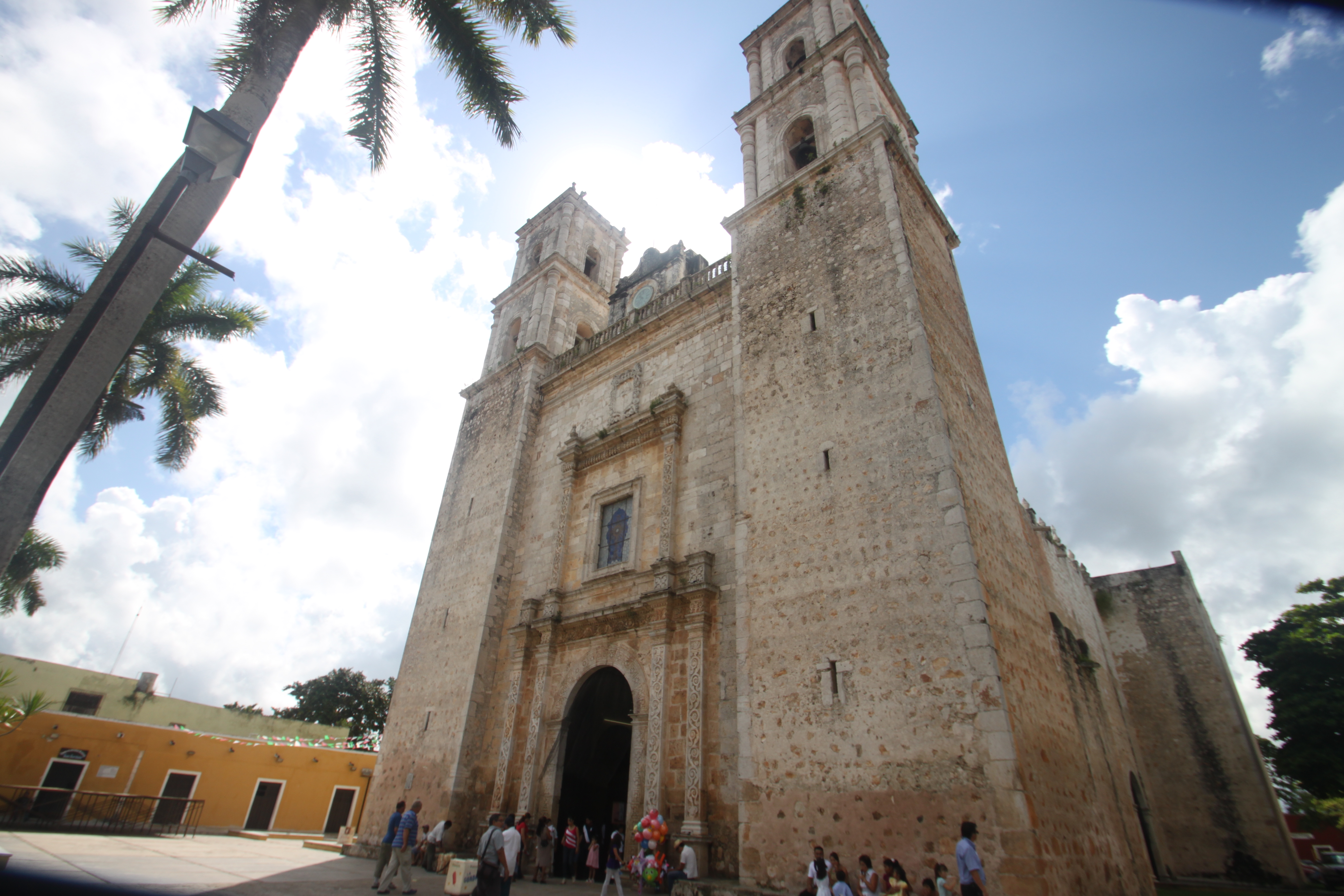 On our way to Chichen Itza, we stopped off at the colonial city of Valladolid where we were given a very brief period of time to explore the historic downtown. Imposing itself over the main square, I was immediately drawn to the Cathedral of San Servacio. We quickly hurried our way past the typical beggars and souvenir hawkers that often adorn the entrance ways to cathedrals world-wide, and made our way inside the church only to discover that Mass was being held. I quickly and silently said a prayer, then headed out back into the street where Karen and I worked our way counter-clockwise around the “Francisco Cantón Rosado”; the main square of the city. Sprinkled along the periphery of the park were souvenir stores, vendors, and restaurants. Not really allotted enough time before we had to be back on the bus, we hastily tried to bargain for souvenirs and find ourselves a snack. We failed at both.