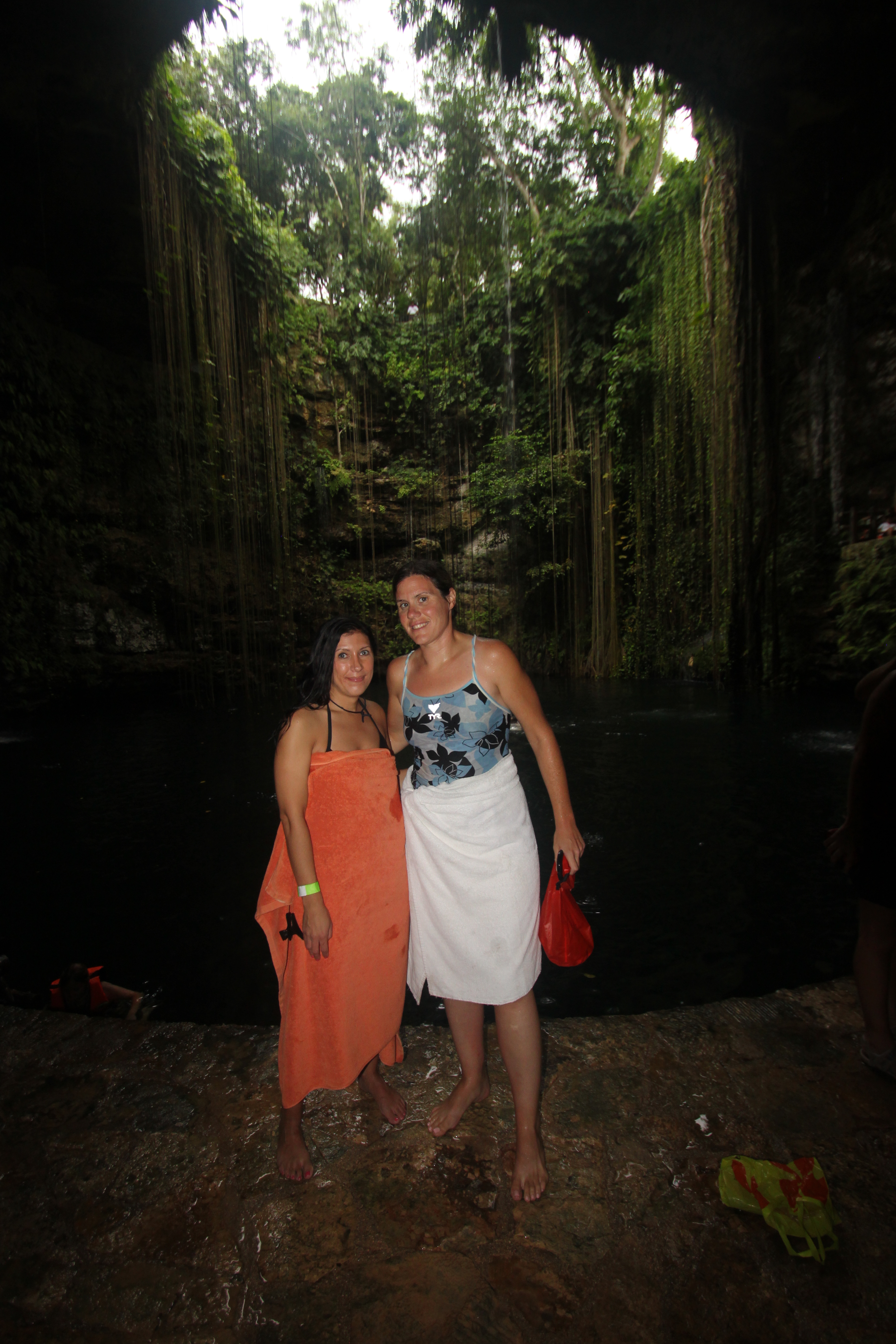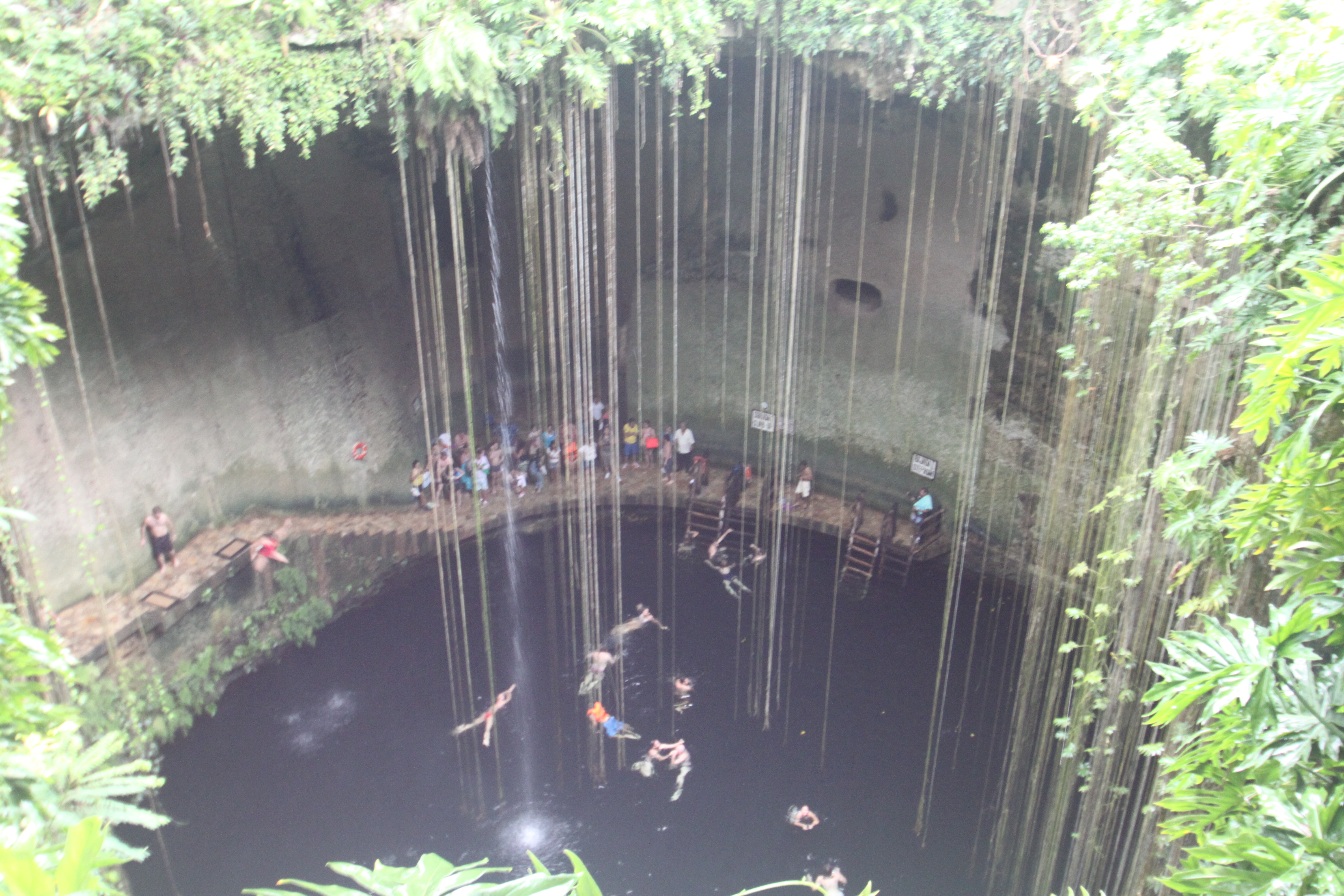 After visiting the ruins, and getting poured on in the process, we headed to a local “authentic” restaurant for lunch and then onto visit the Ik kil cenote. A cenote is essentially a deep body of fresh water in a sunlit cave. I had never heard of these before visiting Mexico but would highly recommend it to anyone who had the option on a tour or on your own. Even though we were cold, tired, and full from just eating lunch, the cenote lived up to its expectations. The Mayans believed that swimming in this water would keep one young and energetic. I have to admit that only after a short period of time in the water I felt extremely refreshed and, for lack of a better word, alive.