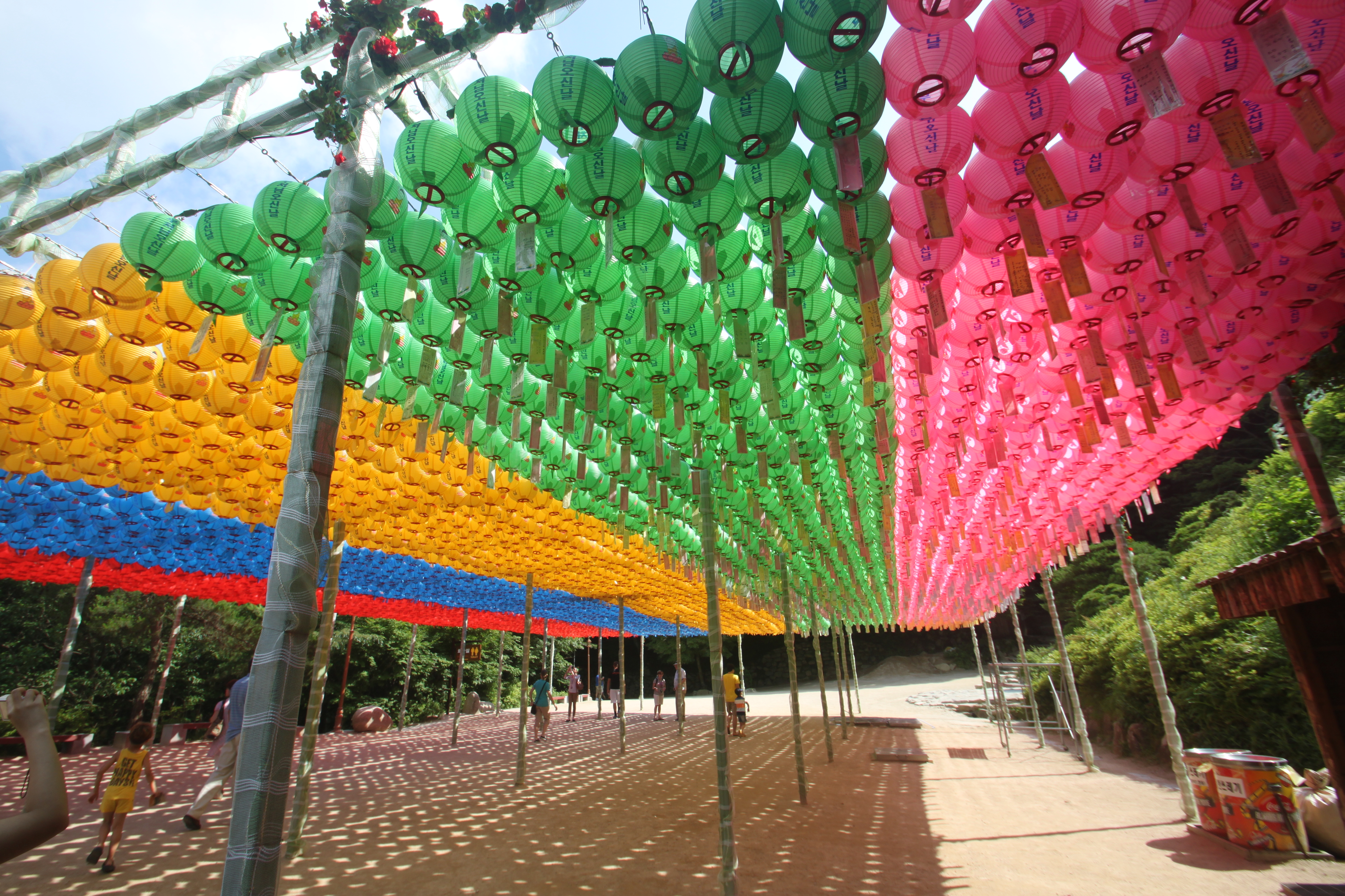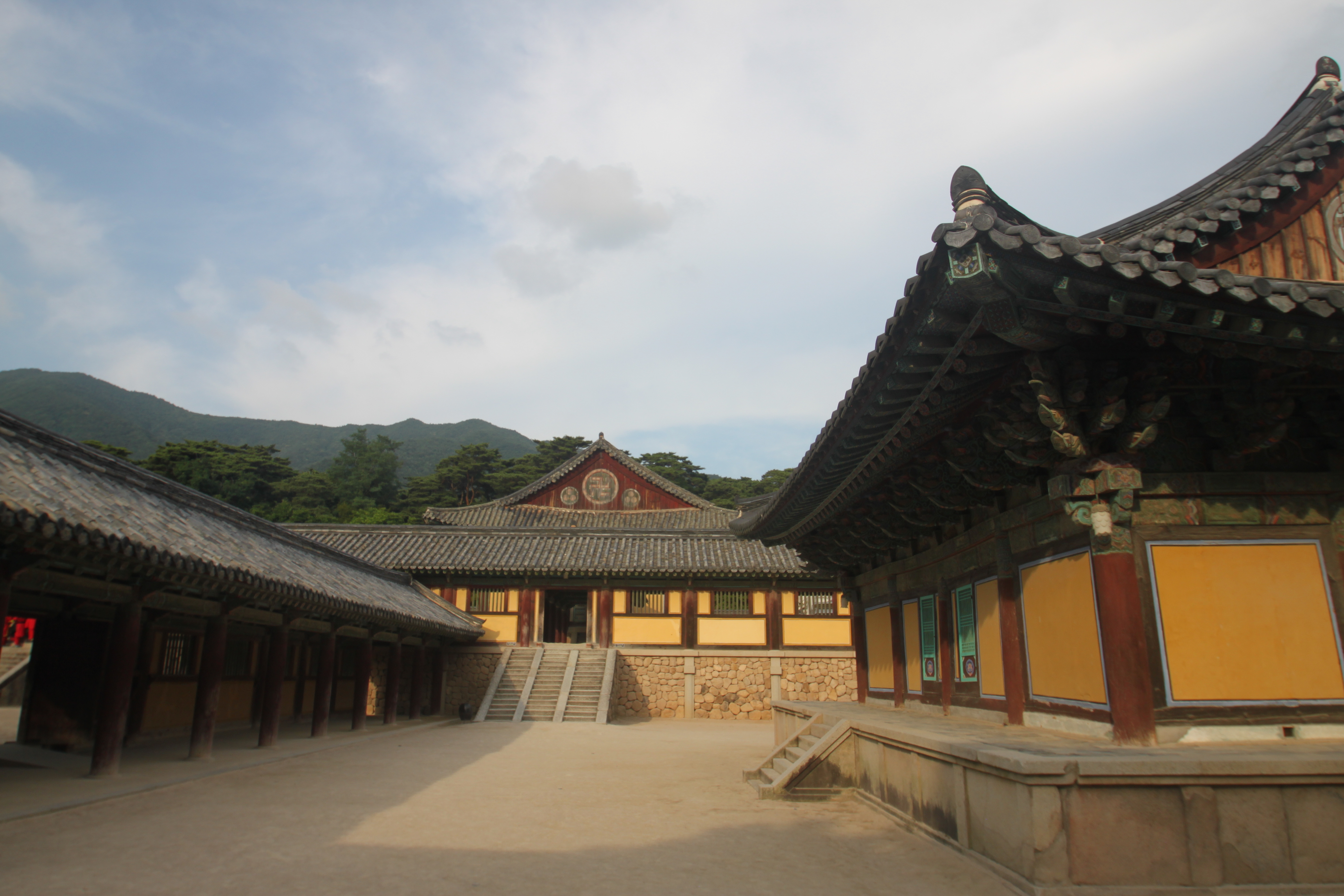 After the visit to the Grotto, we were herded down the mountain to Bul-Guk Temple, which literally means “Buddha Land”. This temple was a working temple for over 1000 years until it was destroyed by the Japanese in 1593. By 1970, the entire structure has been rebuilt. The temples and courts are laid out to highlight the surrounding beauty. It was rather difficult for me to walk through these courts and into the temples with 40 other people trying to do the same thing so when we had a moment of down time at the gift shop, I snuck back up to two of the temples. It was after 5pm and there was no one in the complex so it was moving. The first temple I went into there were 4 women sitting in the corner; the temple keepers, drinking tea and playing on their cell phones. I asked if I could come in and they smiled and motioned yes. I gave an offering and they showed me how to pray and gave me prayer beads for my wrist. A much better souvenir than one could get at the gift shop. Then I moved onto the next hall which is where I wanted to go. I communicated (rather poorly) that I wanted to give an offering for a person to be prayed for 100 years. Basically you are “buying” a paper lantern where you write the name of the person and they hang it above in the temple for 100 days and so when the Buddhists are praying they are also praying for these people’s names listed above. It is very similar to Catholics praying for people’s names in the Book of Intentions. I wrote the name of my mom’s best friend who had passed away a few days before I left. Unlike many Americans, Koreans do not put boundaries on their religions and many Christians here are free to dabble in Buddhist practices and vice versa. I am particularly impressed with that aspect of Korean society. The world can learn a great deal from Korea in terms of religious tolerance.