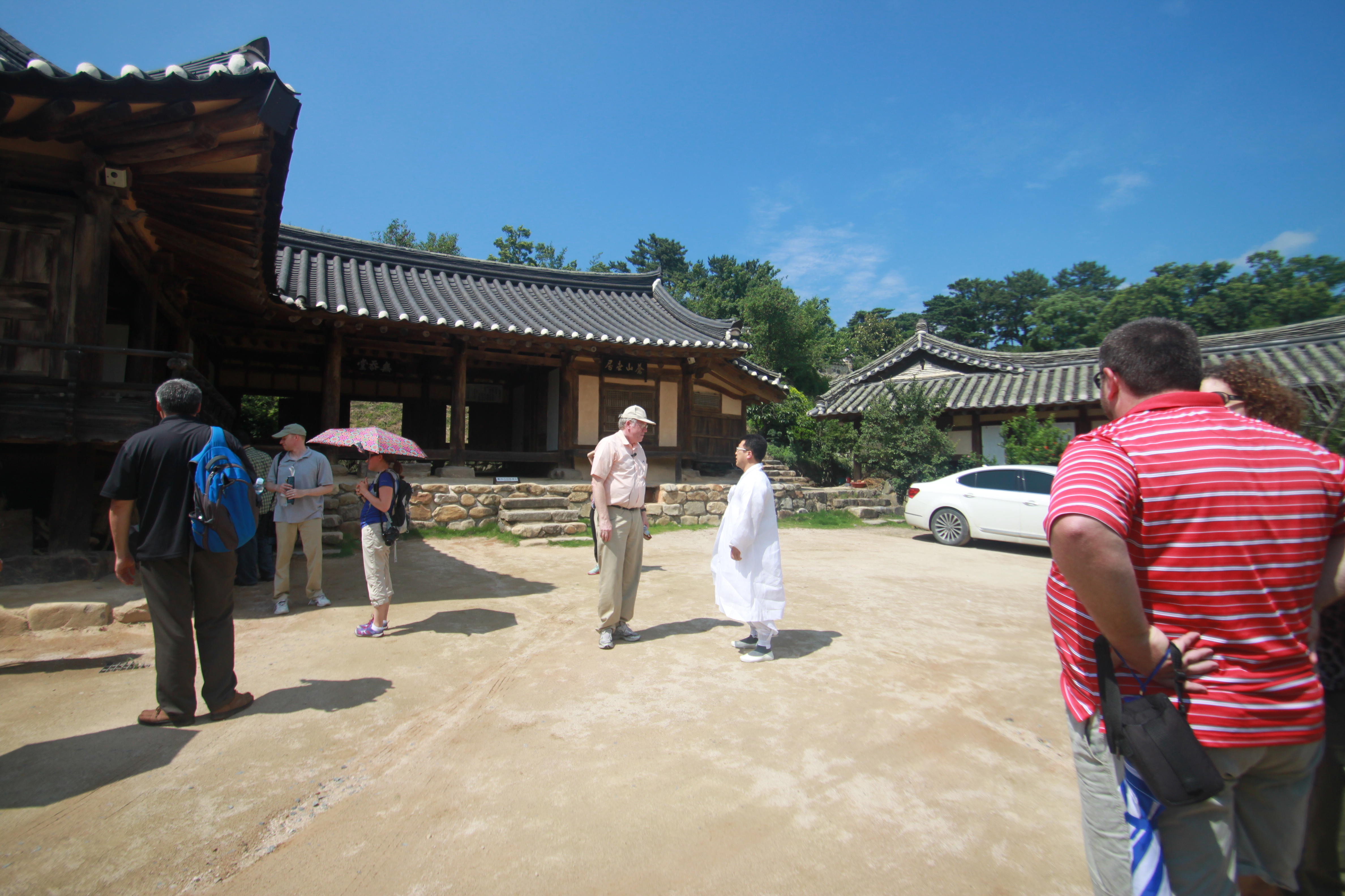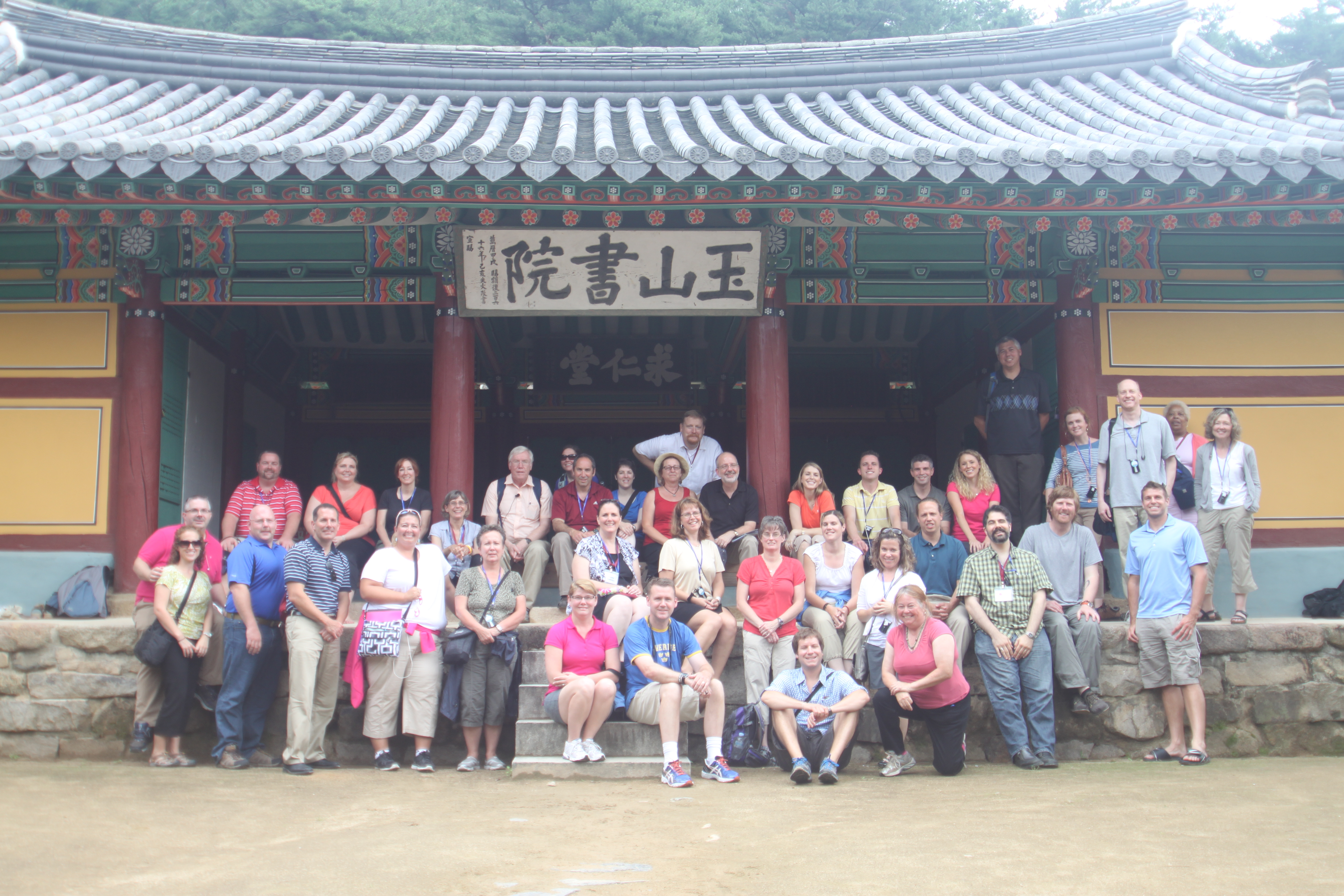 Wednesday morning we checked out of the hotel and drove to Oksan Seowon; a Confucian academy that was built in 1572 in honor of Yi Eonjeok, a great Korean Neo-Confucian philosopher who stressed the primacy of material force over principle. The site is geomantically placed between three mountain peaks on the sides and a stream that flows through the main entrance. After crossing over the stream we arrived at the Gyejeong pavilion where Dr. Peterson lectured to us about Confucian literature and philosophy as we sat on the floor and listened.