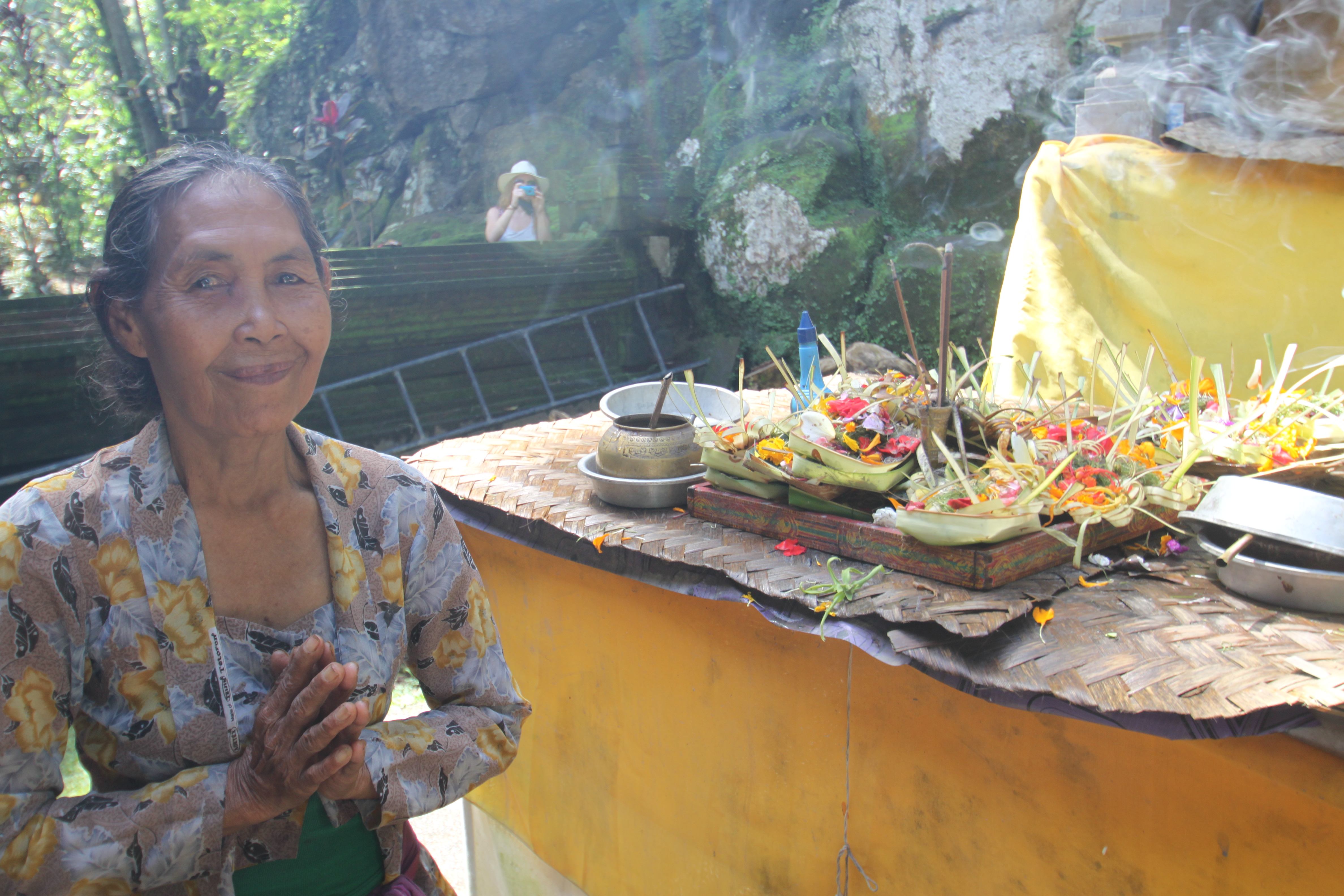 The rest of the day was filled with a visit to Goa Gajah, known as the elephant caves, and a visit to Tirta Empul temple, which literally means temple of water springs. The elephant cave temple dates back to the ninth century, and is one of the most visited sights in Ubud. After checking out the cave itself, with the temple of Ganesha inside, I found my way down a flight of stairs onto a pathway that led into the jungle a bit and happened upon a little temple with a kind Hindi woman tending it. I gave up an offering and we prayed together.