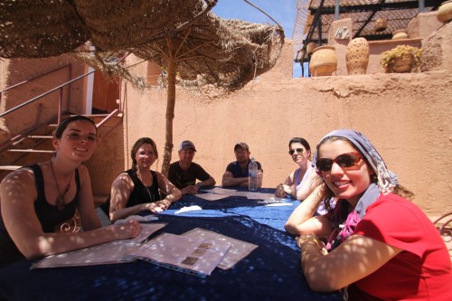 We stopped off at a Berber Cooperative located in the top floor of a stone house, where we were treated to a demonstration of how the women clean and thread the cotton to produce the traditional Berber rugs sold throughout Morocco. We were greeted with mint tea, as is the tradition when haggling for a rug, and watched as one member of our group; Doug, haggled his way into a purchase.