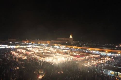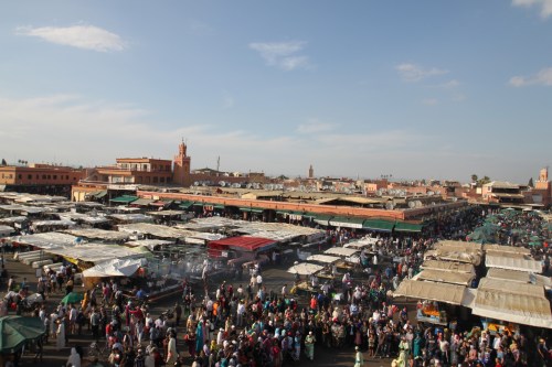 After some last minute shopping, we headed up to the top of Cafe de Glacier where a “grand balcony” offers panoramic views over the giant square. Jemaa El Fna, which means “assembly of the dead” in Arabic, provides the traveler with a unique cultural experience, that changes depending on what part of the day you visit.