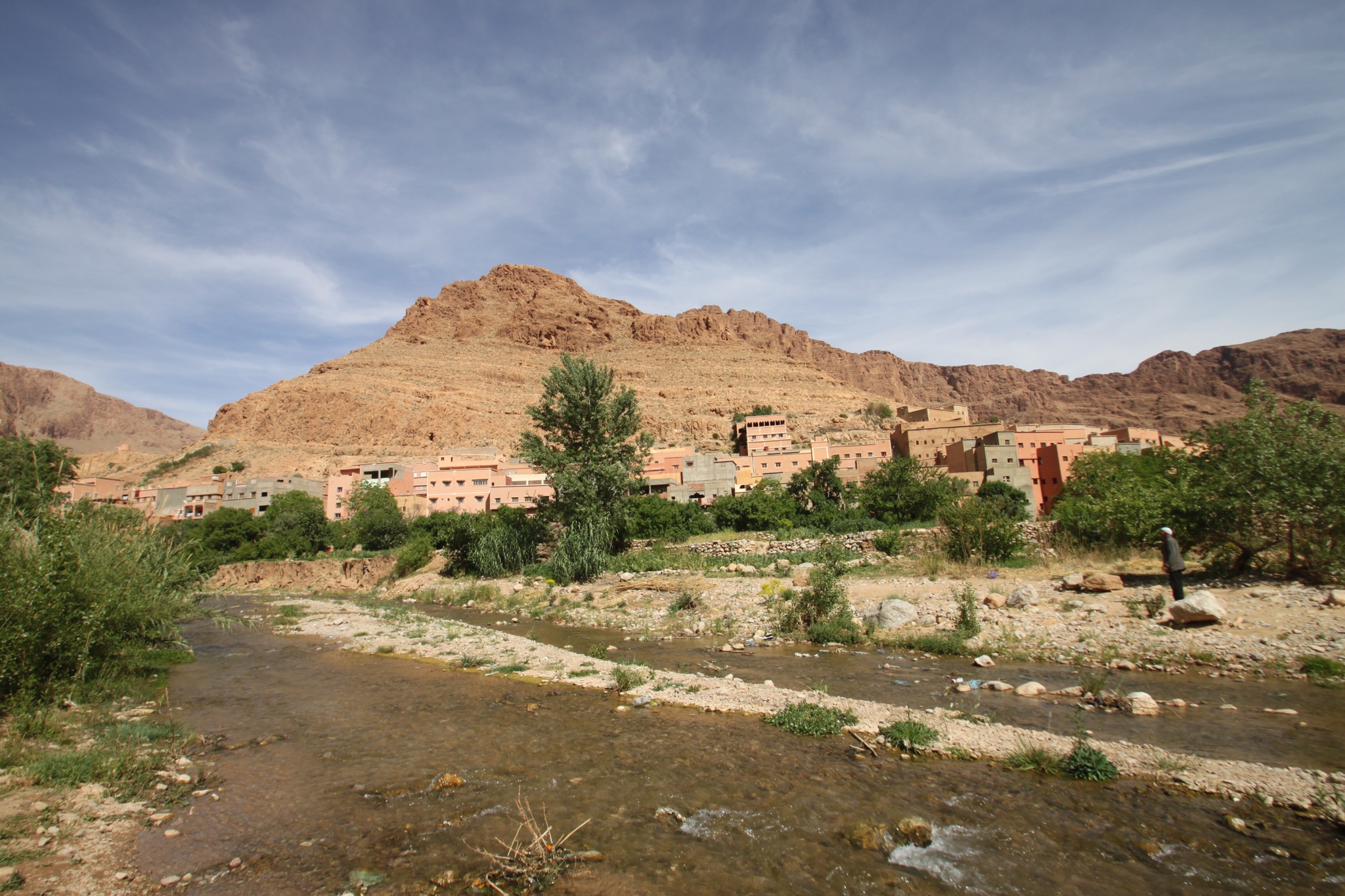 After riding our camels back, showering, and repacking our bags, we headed out for another long drive into the stone desert of Morocco, en route to the Todra Gorge. Just before reaching our destination for the night, we visited a valley palmery; a green oasis that runs over nine miles along the river, into the gorge.