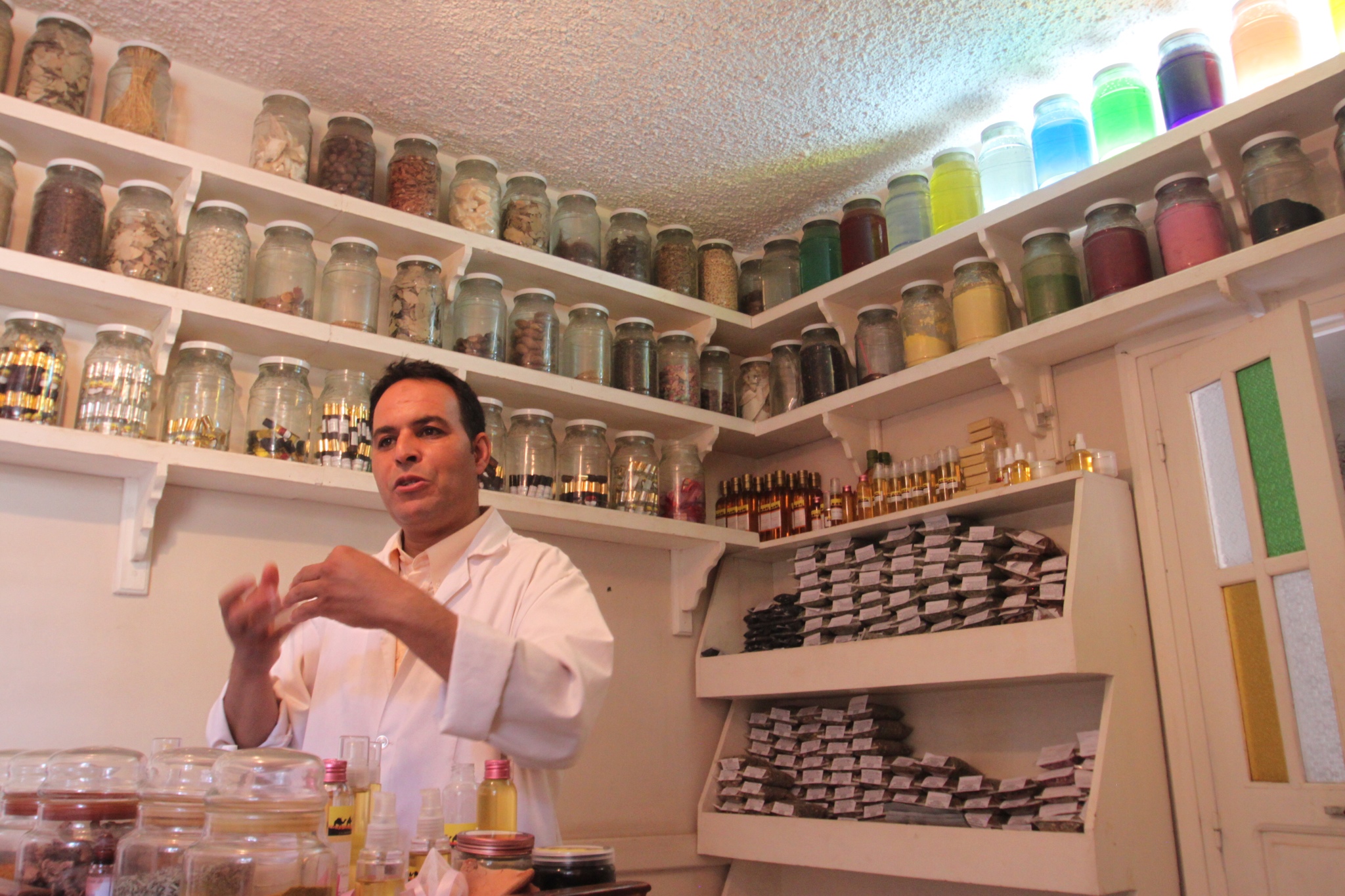 We stopped for lunch in the town of Quarzazate, famous for Atlas Film studios where films such as Ben Hur, Lawrence of Arabia, and Gladiator have been shot. Unfortunately, we were not given much free time (i.e., any) to explore the town, and after lunch were shuffled off, down the road to a spice market to see a demonstration of oils, soaps, and spices, with the hope of course, that we will spend money there.