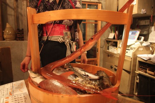 That afternoon and evening, we were given free time with the plans of having dinner in the small, stand -up bars in Ebisu, then heading over to Shibuya for some Karaoke. While the night did not turn out as planned, it was still fun. First, after enjoying some wine in a little micro-bar in Ebisu, we found a small restaurant which served us squid testicles in intestine sauce, washed down with hot sake.