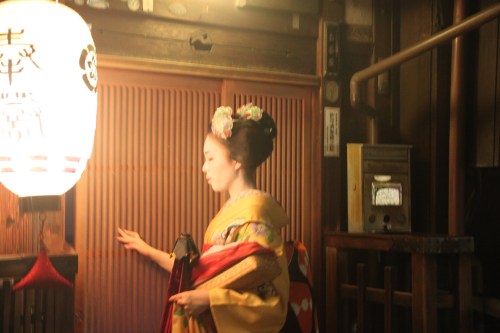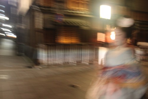 On other occasions, we would be walking down the street, when a wooden door would slide open, and out would pop a geisha, hastily moving away from us, presumably on to her next appointment.