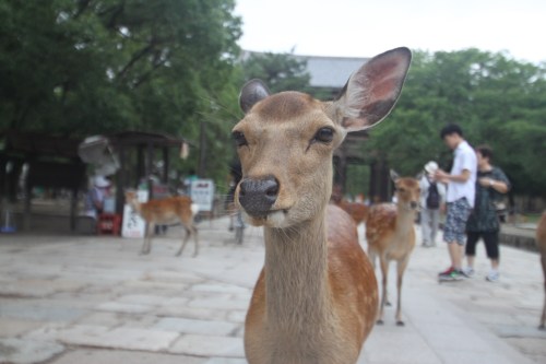 The next day, we hopped on a train that took us to Nara; the first permanent capital of Japan, even older than Kyoto. Our first visit was to Nara Deer Park, which is populated by over 1,000 deer who wander about freely, hunting down tourists who presumably have food.