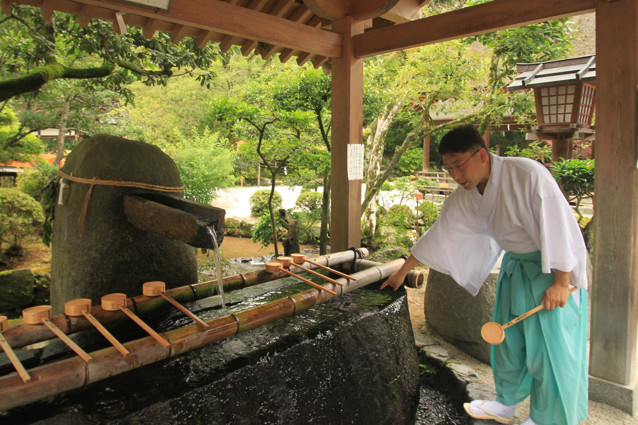 Once passing through the gates, we were led by Reverend Mitsutaka Inuii in a purification ritual that is done at most Shinto shrines, where one washes first their left hand, then their right, and then their face before entering the shrine.