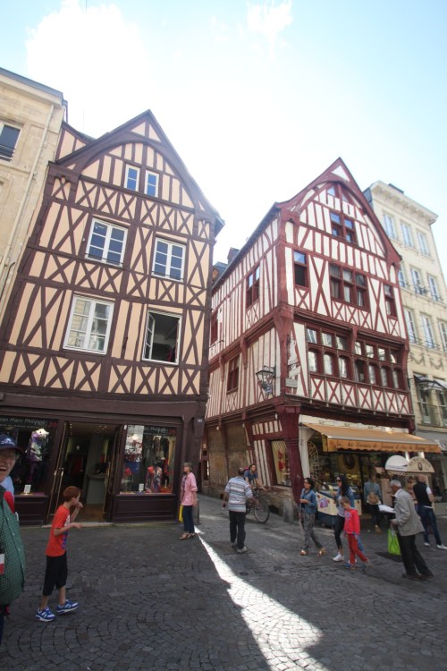 During the full day in Normandy, there was a walking tour of the ancient city, but because we were with the “gentle walkers”, we wound up on a trolley tour that took us through the historic heart of Roen. While I enjoyed this trip, (and it worked much better traveling with mom), it was in the afternoon when I really had the opportunity to go out and explore the city, such as the historic market square where Joan of Arc was martyred.