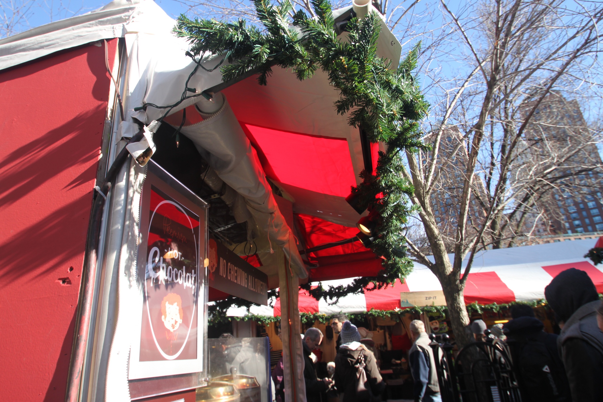 While both holiday markets boast many of the same stalls (outreaches of small, privately owned local shops), there was a distinct difference between the two. The one on Union Square was a bit smaller, had a few sections of live music, and food and hot drink vendors interspersed throughout the stalls. It was easier to get around and thus, enjoy shopping, but it just wasn't quite as festive.
