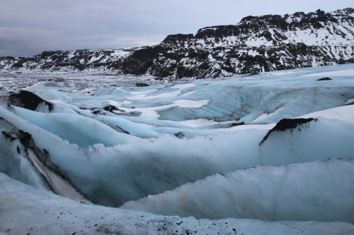 Our guide, Thurstin, was charming, adorable, patient, and knowledgable; everything you want in a tour guide. As we slowly acended up to the glacier, I looked up at a beautiful panorama of blue ice, surrounded by volcanic brown ash mountains dotted with snow.