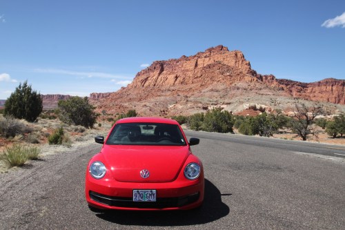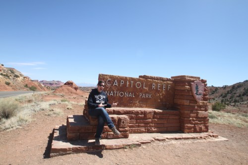 Though we had originally planned to skip Capital Reef National Park due to time restraints, we were excited when we realized, looking at a map, that we would actually need to drive right though it in order to get to our destination for that evening; Moab. Though we didn't see much of the park, mostly driving through and pulling over for pictures, we did get a little taste of its yellow sandstone arches and towering red rock formations. We also went in search of petrographs, but my blind eye couldn't see much.