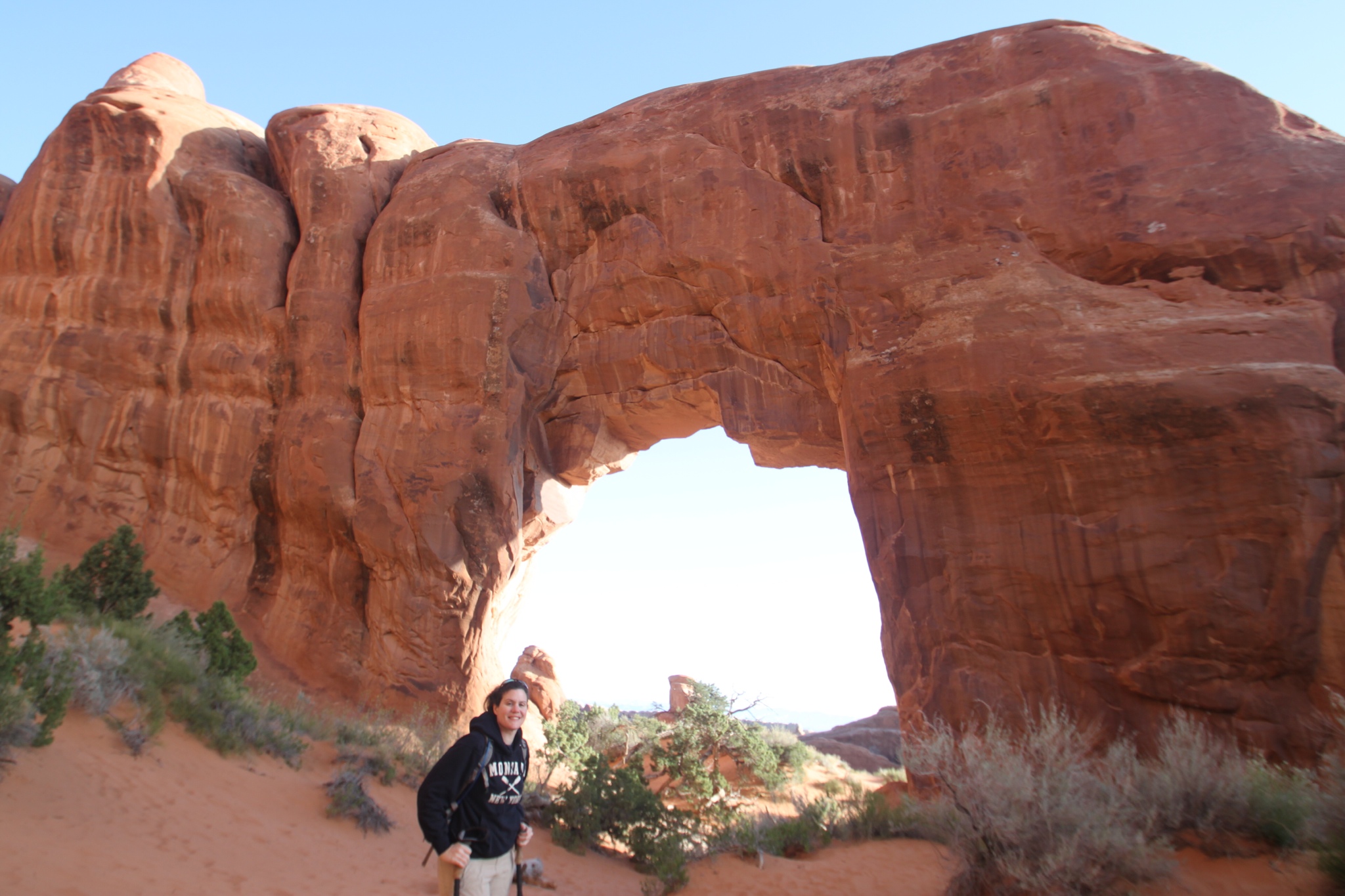 That night, we finally arrived in Moab a little after 5pm. We checked into the Red Stone Inn, a Kitsch, mid-range motel/hotel south on Main Street, with full-on wood paneled rooms, complimented by framed pictures of the iconic landscape and old western movies. We quickly got settle, walked around town a bit, then headed to the Moab Brewery for a drink and bite to eat before calling it a day. Our plan for the next morning, again, was to get up bright and early and beat the crowds into Arches National Park.