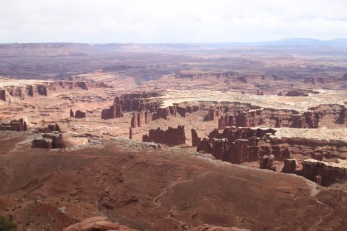 Canyonlands is divided into three “districts” separated by the Green river and the Colorado River. It is impossible to visit all three sections from the same entrance, so we decided to visit the northern most section; “Islands in the Sky” due to its proximity to Moab and to the airport. As you drive through this section of the park, you are really driving atop a giant mesa that provides panoramic views of the surrounding area for 100 miles, including “the Needles” district in the south of the park. We stopped off for a few quick hikes, the highlights of which were Mesa Arch and the Grand Viewpoint Trail.