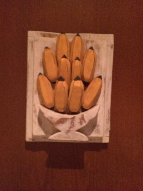 And just in case your find yourself at the restuarant some time in the future and can't figure out where the bathroom is, just look for these symbols on each door; the banannas indicate men, and the bikinis, women.