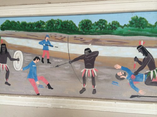 In addition to the souvenirs, there are also many interesting decorations that adorn the market; from a giant statue of the Virgin Mary, to colorful wall murals, depicting violent battles between Europeans and the Indigenous people of Brazil.