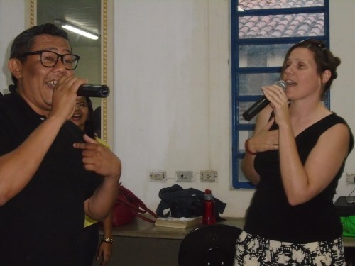 With much trepidation (and rightfully so), we walked into the faculty lounge after our workshop, only to find that Joselia had arranged a make-shift Karaoke session with all of the school’s teachers. Okay, so I suppose some context is needed here.
