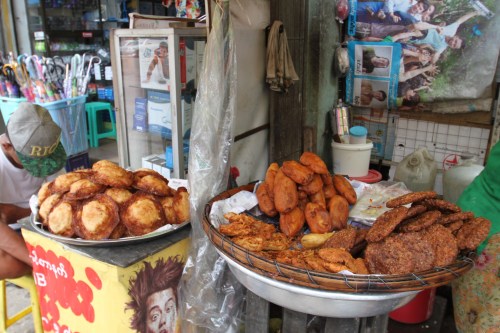After our almost 4 hour ordeal of getting plane tickets, the skies really opened up and it began to pour. Yet, somehow neither one of us cared that we were walking through puddles deep enough to anchor a small private fishing vessel. In our effort to not get totally soaked however, we ducked into a tea shop. The tea in Myanmar is Indian black tea, boiled with condensed sweet milk, and it costs about 30 cents. Tea shops are also very important places in Myanmar, where men (and more recently, women) have traditionally gone to discuss politics and socialize.