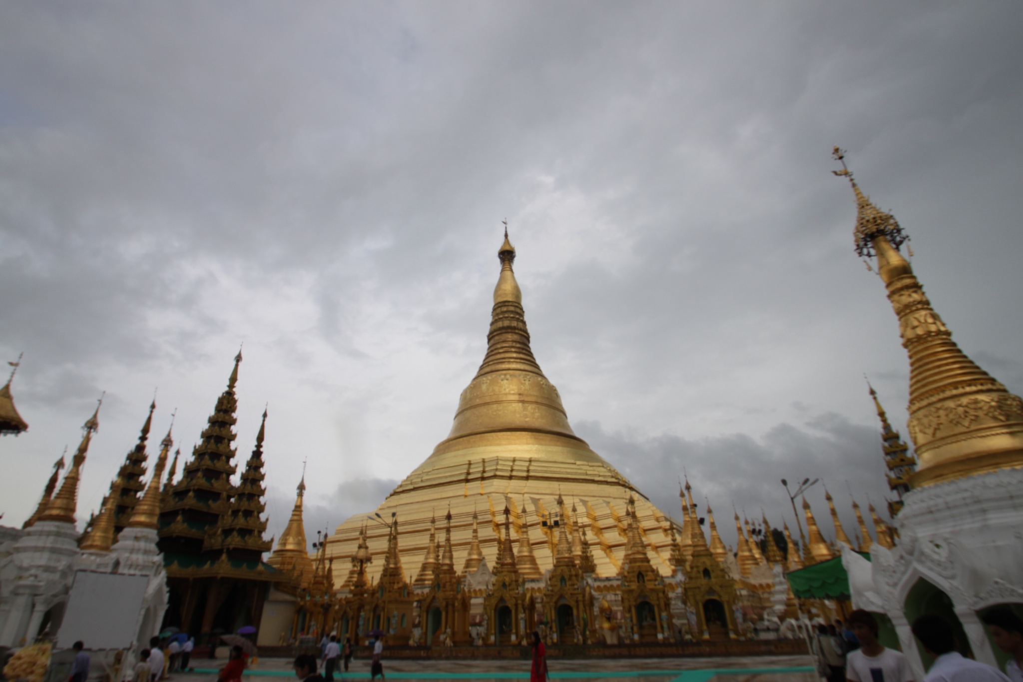 From here, we headed to the Bogyoke Market to grab some lunch, and perhaps do some early souvenir shopping. After eating a questionable meal (still not sure if we’re in the clear from this one) of cold chicken curry and a Burmese version of vegetable samosas, we went back into the market where we stumbled upon a bunch of people cheering in a circle, and a friendly man explained to us that it was a game which would be on national television. As the weather looked like it was clearing up a bit (how quicly our definition of good weather has changed), we hopped a cab to take us to the iconic Shwedagon Pagoda.