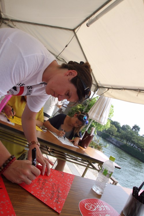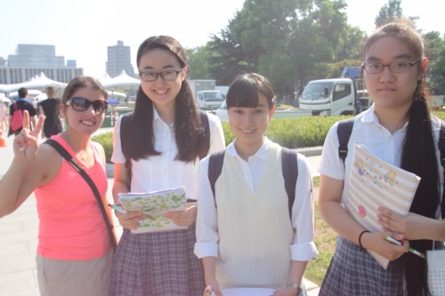 After running through the airport to catch our plane in Taiwan, we landed in Hiroshima early in the afternoon on August 5th, a day before the anniversary. We quickly dropped off our bags and made our way down towards the Peace Park, where there was an incredible energy felt through the air. Entering near the A-bomb dome, we were inmediately approaced by eager and friendly school children who enthusiastically asked us to sign their petition to end nuclear weapons. We no sooner walked about 15 feet, when another young Japanese student wanted to ask us a few questions for a research project he was conducting. Over the next day and half, we were probably interviewed at least 7 times between the two of us.