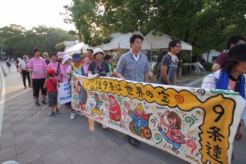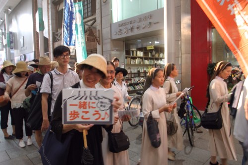 That evening, while we were crossing the bridge, we got caught up in a protest for peace led by a local Catholic Church. With smiles and music, they marched through the streets of Hiroshima happily spreading their message of peace. We happily joined them.