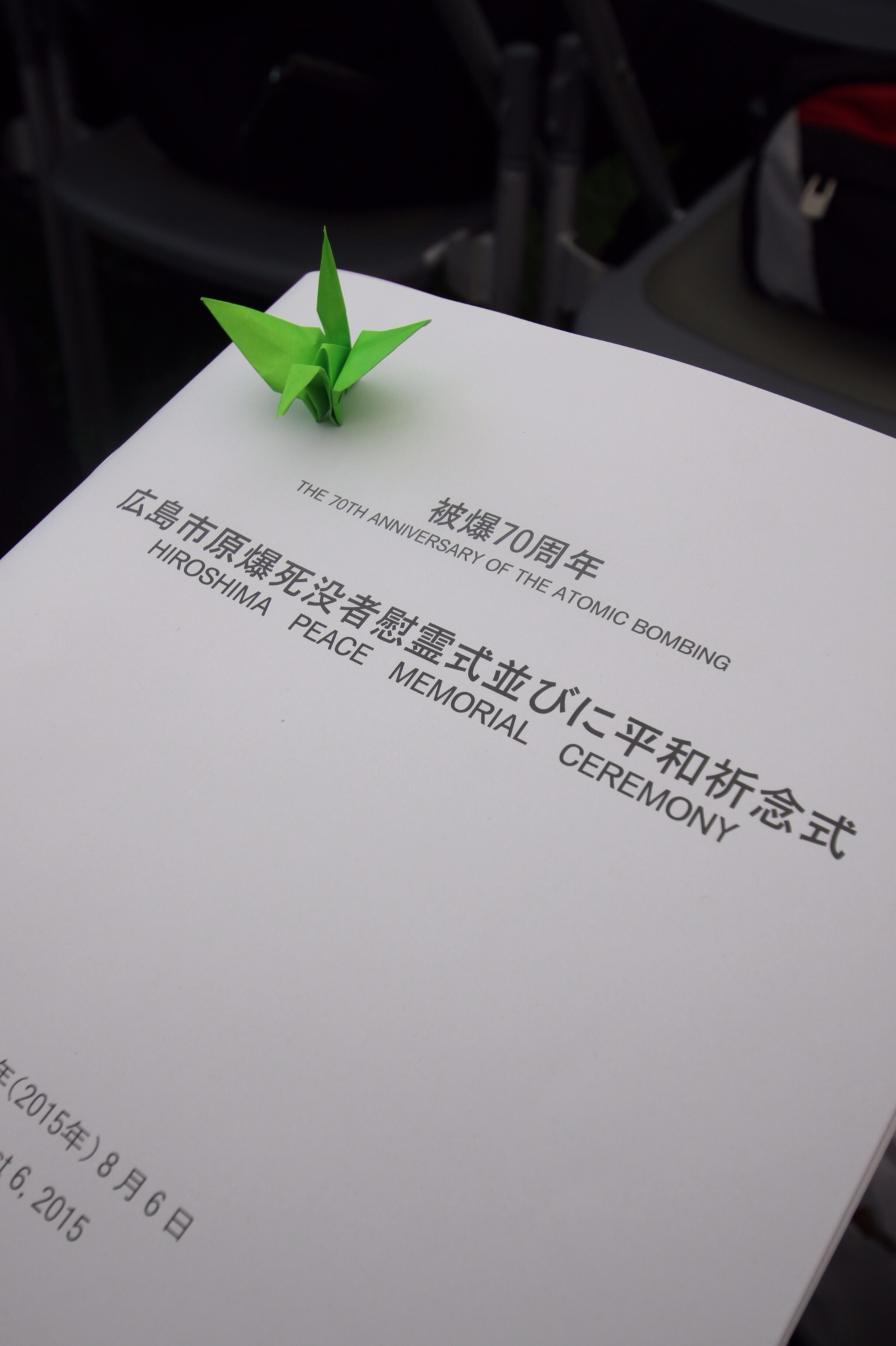 On the day of August 6th, we woke up extremely early so we could be at the park by 6am. As we approached the A-bomb dome, we saw crowds of people descending onto the park, yet nobody was in a rush or pushing people. Just another example of the ordiliness and politiness with which the Japanese consistently carry themselves. We quickly, though not aggressively, walked to the other end of the park, where we found seats under the giant white tents set up for the official commemoration ceremony to take place at 8am.