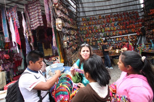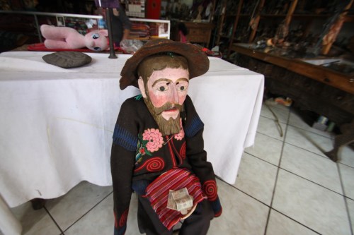 Our final day in Pana, we took a boat over to Santiago de Atitlan; perhaps the most interesting of the lake-side towns. When our boat pulled into the dock, we haggled a bit and hired a tour guide to take us to see Maximon, the Mayan-Pagan-Catholic idol that is an integral part of the town’s tradition. Before being appropriated into the town’s version of Catholicism, Maximon was a pre-columbian Mayan god of the underworld. His original name being Mamm (grandfather) combined with San Simon to produce his name today, Maximon (pronounced Ma-shi-mon). He is sometimes referred to as the “smoking god” because people often give offerings of cigars and rum. On any given day, you can pay a tuk-tuk driver to take you to see the town’s effigacy of the god (also with a cigar in his mouth), which is moved from one house to another year to year so as to protect him. This practice likely originated out of fear of the Catholich Church, who in its effort to demonize Maximon, equated him with Judas. Also known as the money god, it is believed that Maximon can bring secular success to those who believe in his power, which explains why we saw statues of him everywhere in the Chichi market.