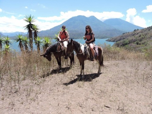 After a lovely breakfast with Jenna and her guests, we paid a boat taxi to drop us at San Pedro, a little town that sits below the slopes of the San Pedro volcano across the lake. The town is filled with restuarants, bars, and tour companies catering to the backpacking crowd, and a few hippie hold outs from the famed gringo trail of the 1970s. Immediately after departing off of the boat, we decided to go horseback riding along the cliffs of the San Pedro volcano, and were treated to magnificent views across the lake.