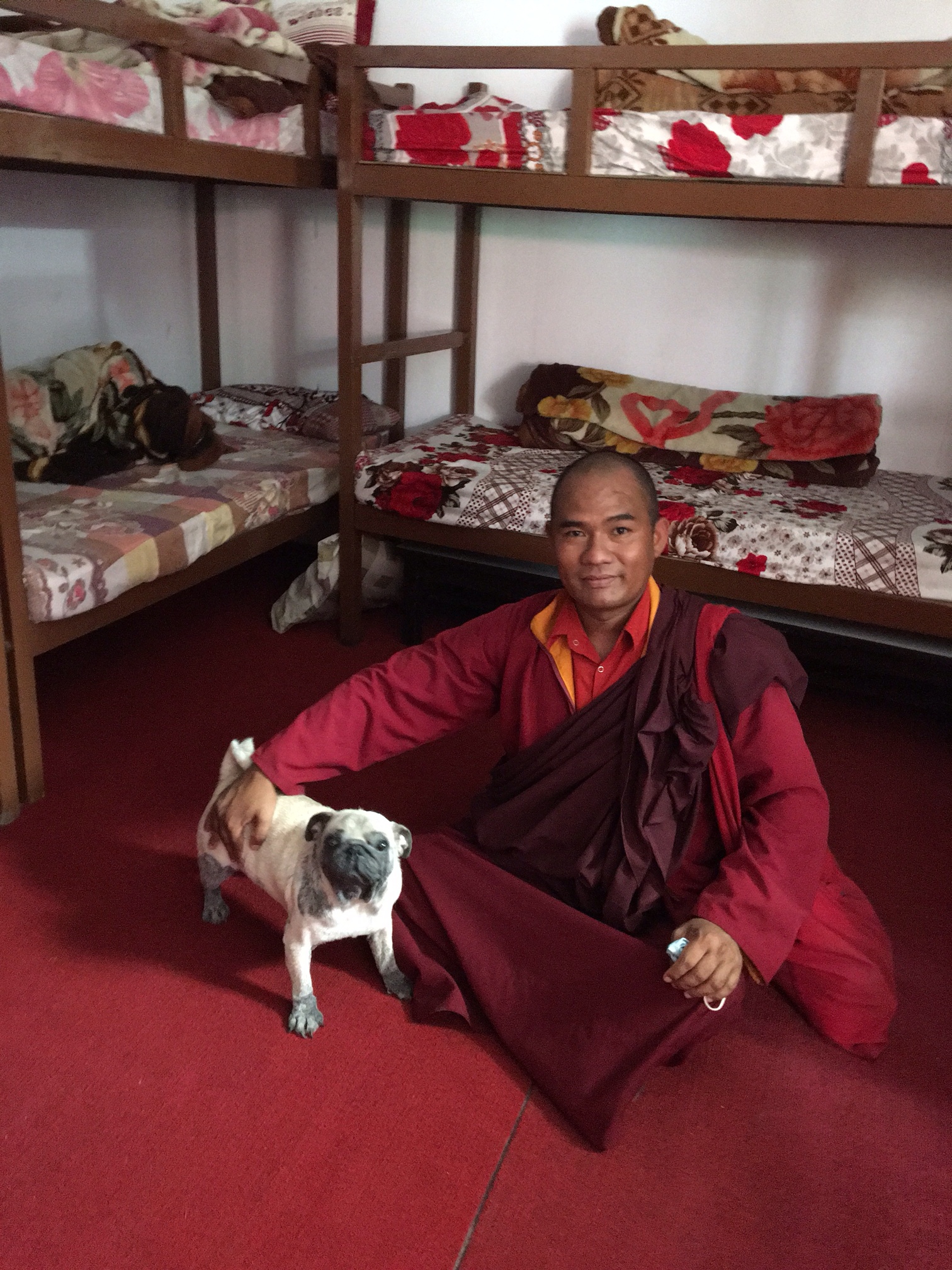 When we arrived at his orphanage, we were greeted by Pinto, an adorable little Buddhist pug.