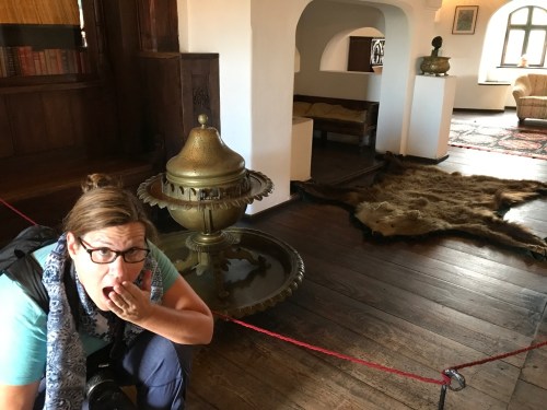 About 2 hours outside of Brasov, we stopped off in the beautiful resort town of Siniai, which sits at the base of Peles Castle. Much nicer and bigger than Bran’s and the “pile of bricks” that is Poenari Castle, Peles Castle served as the summer home of King Carole and the Royal family in the late 19th century. Visiting the castle is much like visiting other palaces throughout Europe where you walk from room to room oohing and aahing at the ornate doors, esoteric collection of paintings, and sheer gaudiness that often is synonymous with royal decor. While inside, we stealthily (not really) hopped on the back of a tour and got a bit of information regarding the history of the castle. I don’t really remember much of what we learned but one thing that is for certain; Dracula did not sleep here!.