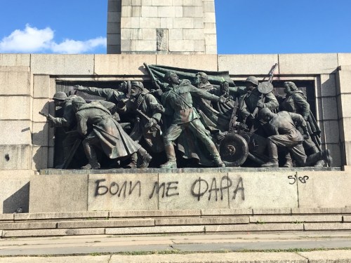 One of our last stops was at a park where we were privied to numerous monuments that memorialized the red army communist fighters. Many of these have since been defaced, but there is a “local” organization called Friends of Russia who are quick to clean the graffiti or other defacement, and have also funded the installation of security cameras in the area. Although communism no longer exists in Bulgaria, there are certainty those who are nostalgic about it, and indeed, protective of its memory.