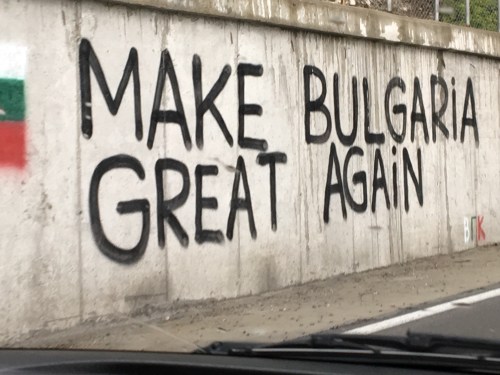 The very last thing we saw on the tour was a piece of the Berlin Wall which was given as a gift from Germany. When the wall fell on November 9, 1989, the fate of these eastern bloc countries was changed forever. While it might seem like this was an obvious step towards progress and democracy, for many living in these countries today, there has not necessarily been an improvement. Health care, education, and other basic services were all taken care of under the communist regime, yet there was no freedom of speech and corruption in government ran rampant. Although the Cold War may seem like ancient history to some, the effects of that conflict and the rise of communism in Europe are still reverberating today. On the other end of the spectrum, we saw many graffitied walls that indicated they rise of an ultra-nationalist, right wing movement in Bulgaria, as well as Romania.